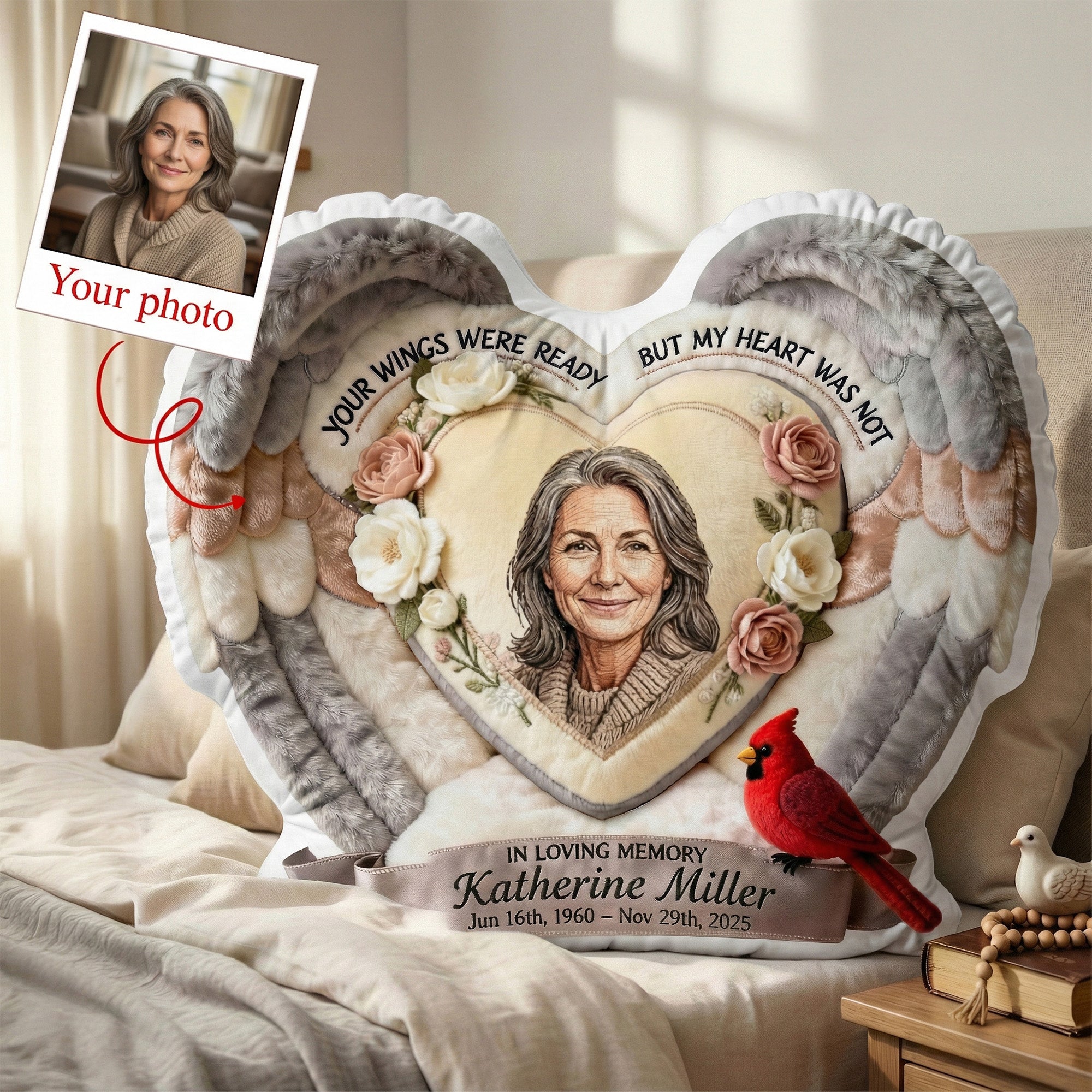Custom Photo Heaven In Heart Shaped Pillow, Personalized Keepsake To Remember Loved One 02qhmg191225
