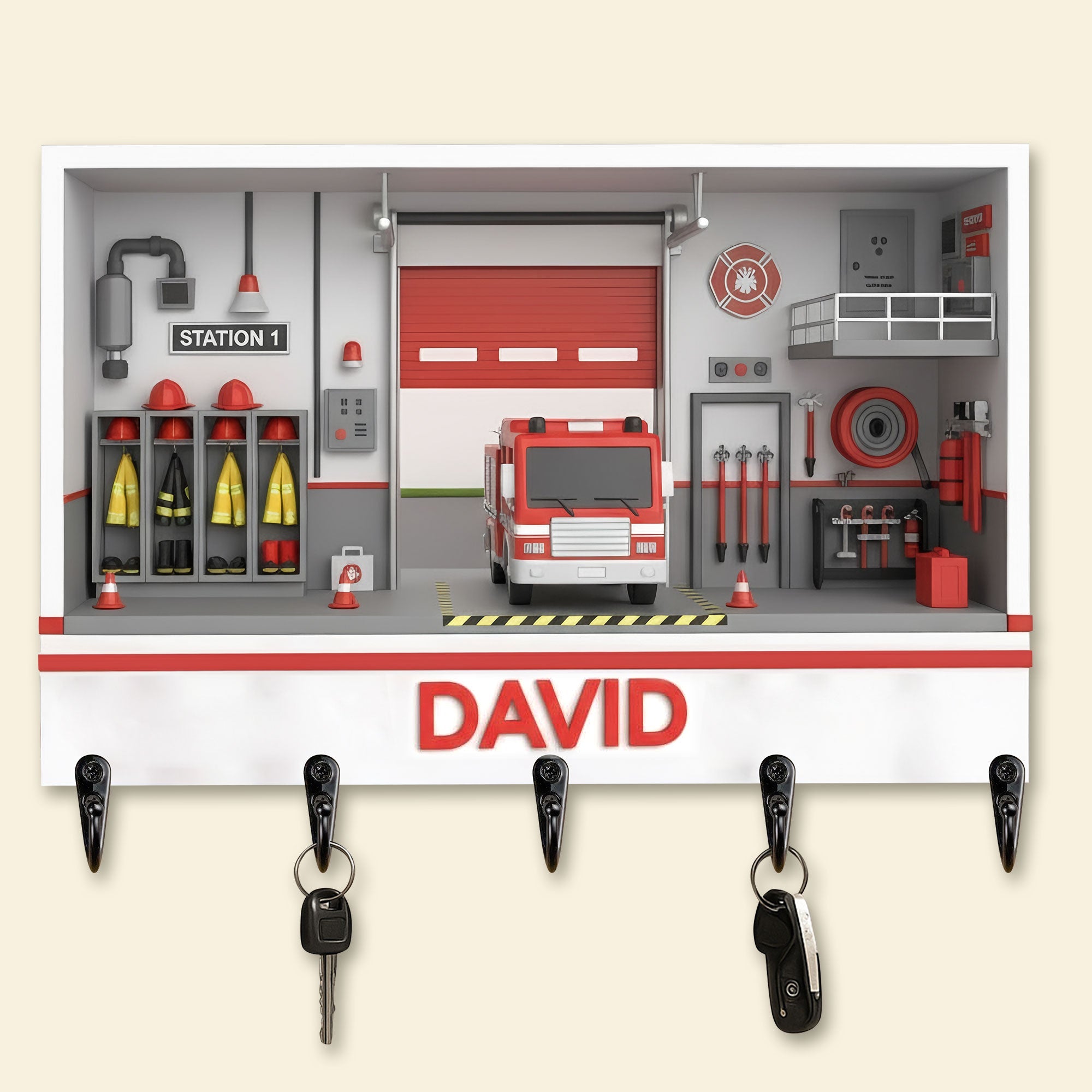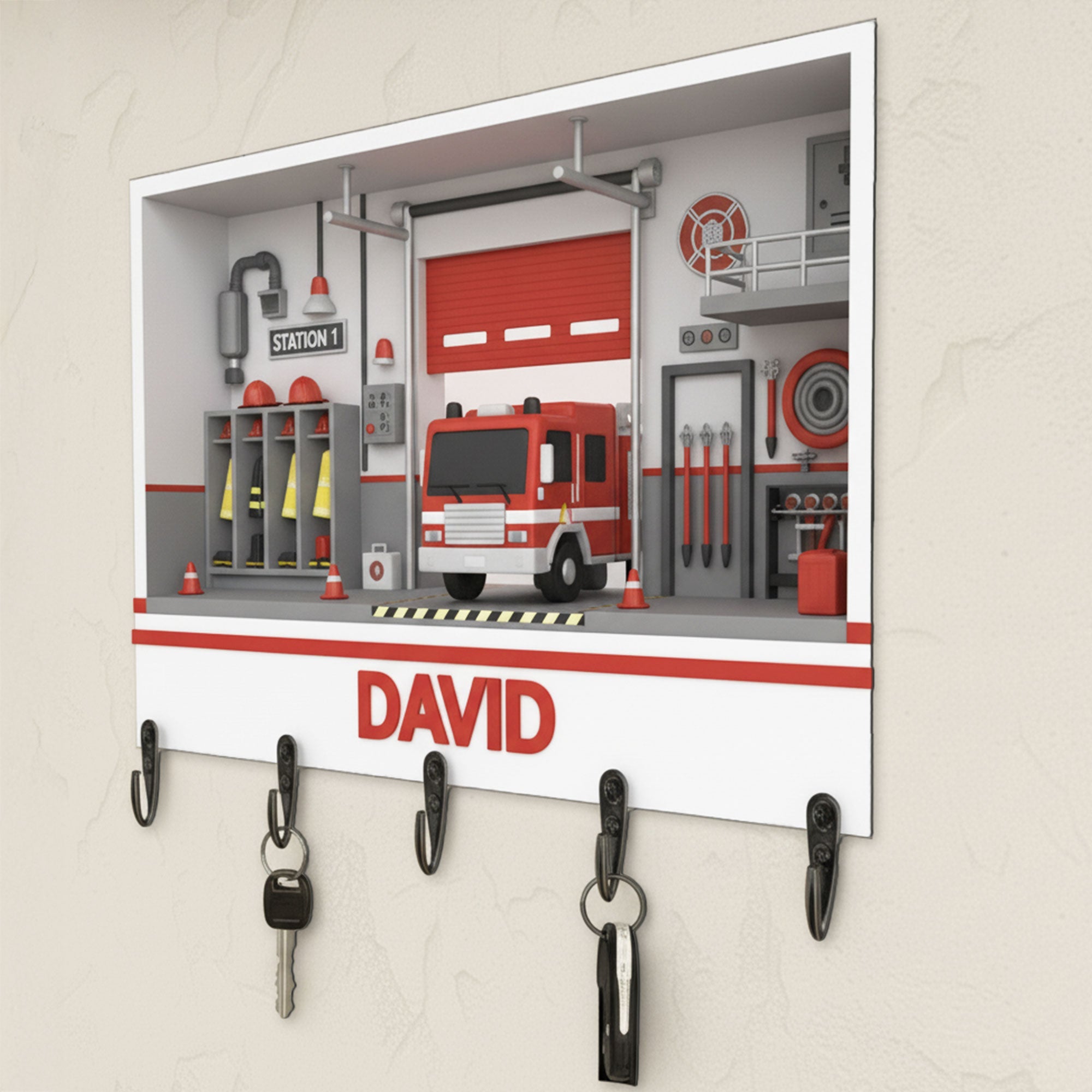 Fire Station Key Hanger - Personalized Gift For Firefighter 04HYTI021225