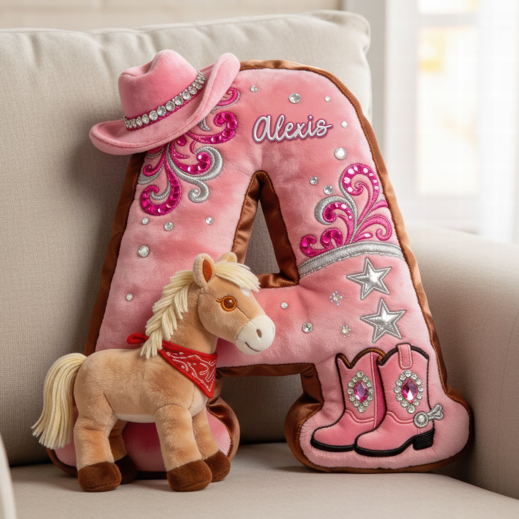 Cowgirl Alphabet Initial Letter Pillow - Personalized Gifts For Horse Lovers 03naqn111225