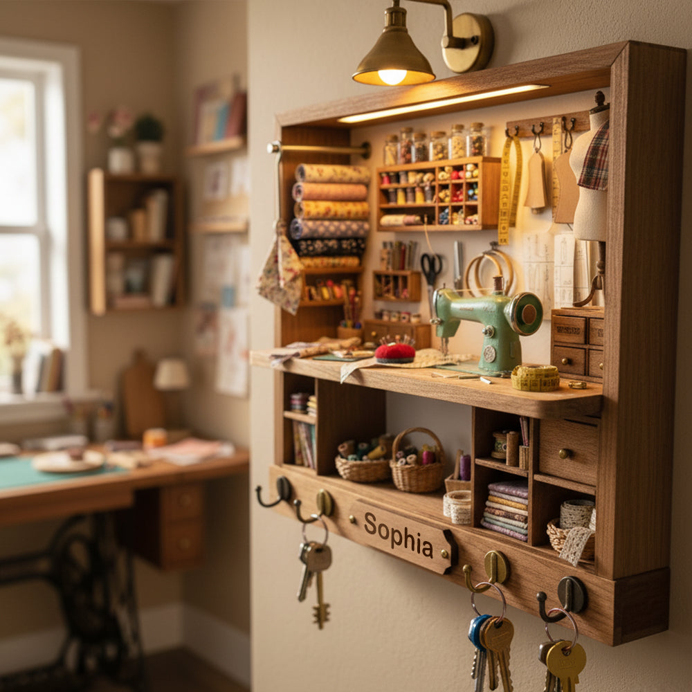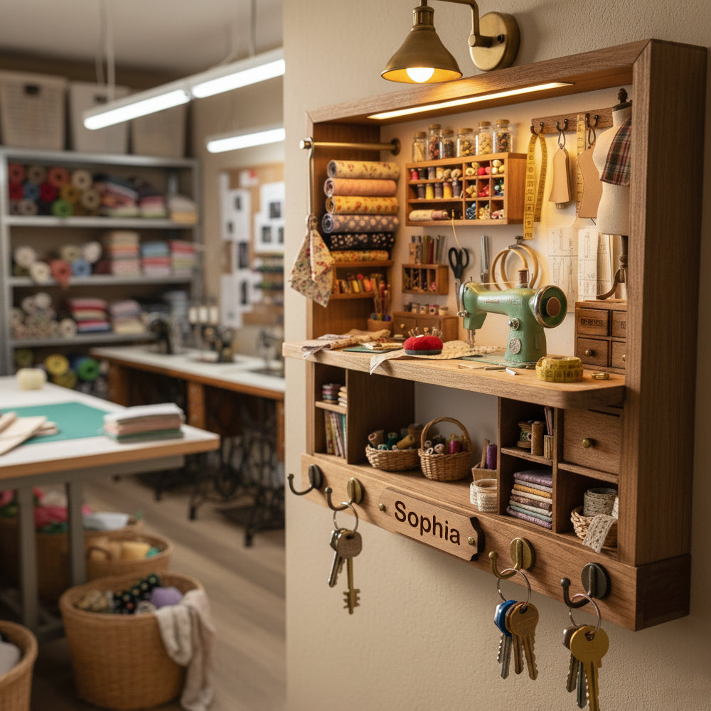 Discover stylish wood key hangers, perfect for organizing your space. Ideal personalized gifts for sewing lovers, combining functionality with a personal touch.